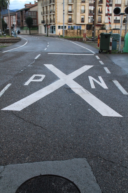 En esta foto vemos la cruz de San Andrés y las letras «P» y «N» que se pintan siempre en la carretera. Y no, lo del medio no es una «X», sino una cruz de San Andrés.