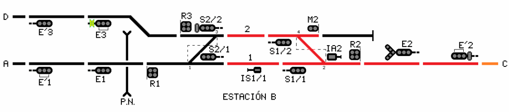 Entonces, con cualquiera de esos circuitos ocupados y un itinerario establecido desde las señales S2*1 ó S2/2 hacia “A”, el PN se protegería.